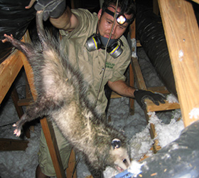 While we can deal with most animals that can cause problems, we particularly specialize in dealing with raccoons and opossums, and have experience in the habits of these animals so that we know the best spots to place our traps. It is also worth noting that these animals transmit diseases such as salmonella and leptospirosis through their droppings, so we can also sanitize the area after we have captured and removed the animals. All our technicians can also offer a repair service, where any holes or access points used by these animals can be sealed to prevent future infestations of the property.